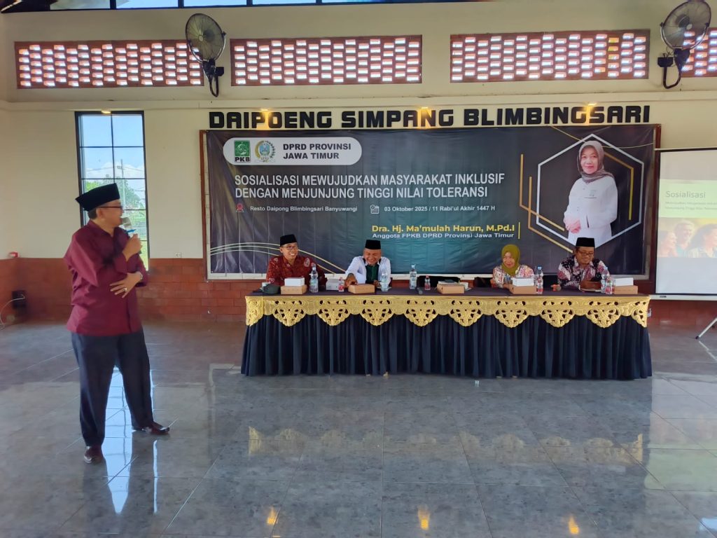 Kegiatan ini menghadirkan narasumber-narasumber hebat diantaranya Hj. Makmulah Harun, MPd.I (DPRD Prov/PKB), KH Abd. Malik Syafaat , MPd. (Ketua DPC. PKB Bwi), Dr. A. Zaki Al Mubarok, M.Si (DPRD BWI/PKB).